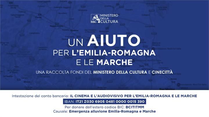 Al via la raccolta fondi del Ministero della cultura a sostegno delle persone e delle realtà dell’Emilia-Romagna e delle Marche gravemente colpite dal maltempo. La Direzione Generale Cinema e Audiovisivo ha incaricato Cinecittà di aprire un conto dedicato. Già coinvolte le principali associazioni del settore cinematografico.
